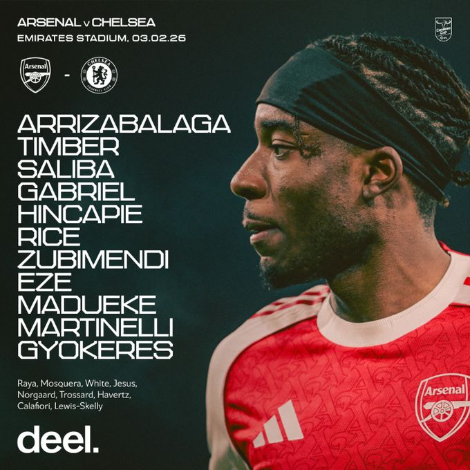 Subs – Jesus, Trossard, Havertz, Norgaard, Calafiori, Skelly, Mosquera, White, Raya.