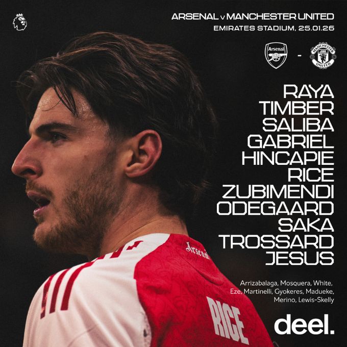 Arsenal host Manchester United in the Premier League shortly, and this is the starting eleven as announced by Mikel Arteta.