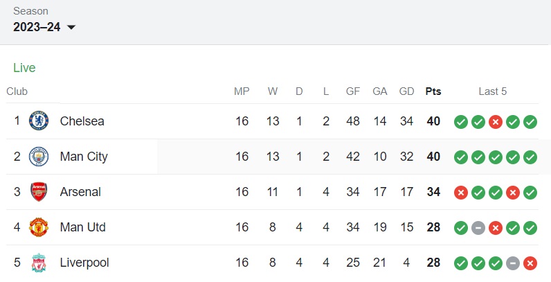 Looking at the table, if Arsenal are contending with Chelsea for the title, they are doing a poor job. After 16 games, they only have 34 goals, whereas Chelsea has 48, demonstrating how unreliable the Arsenal attack has been. Though their biggest challenge has been that teams tend to play defensively against them, they must find a way to be clinical in attack. They have the talent; it is just a matter of finding a way.